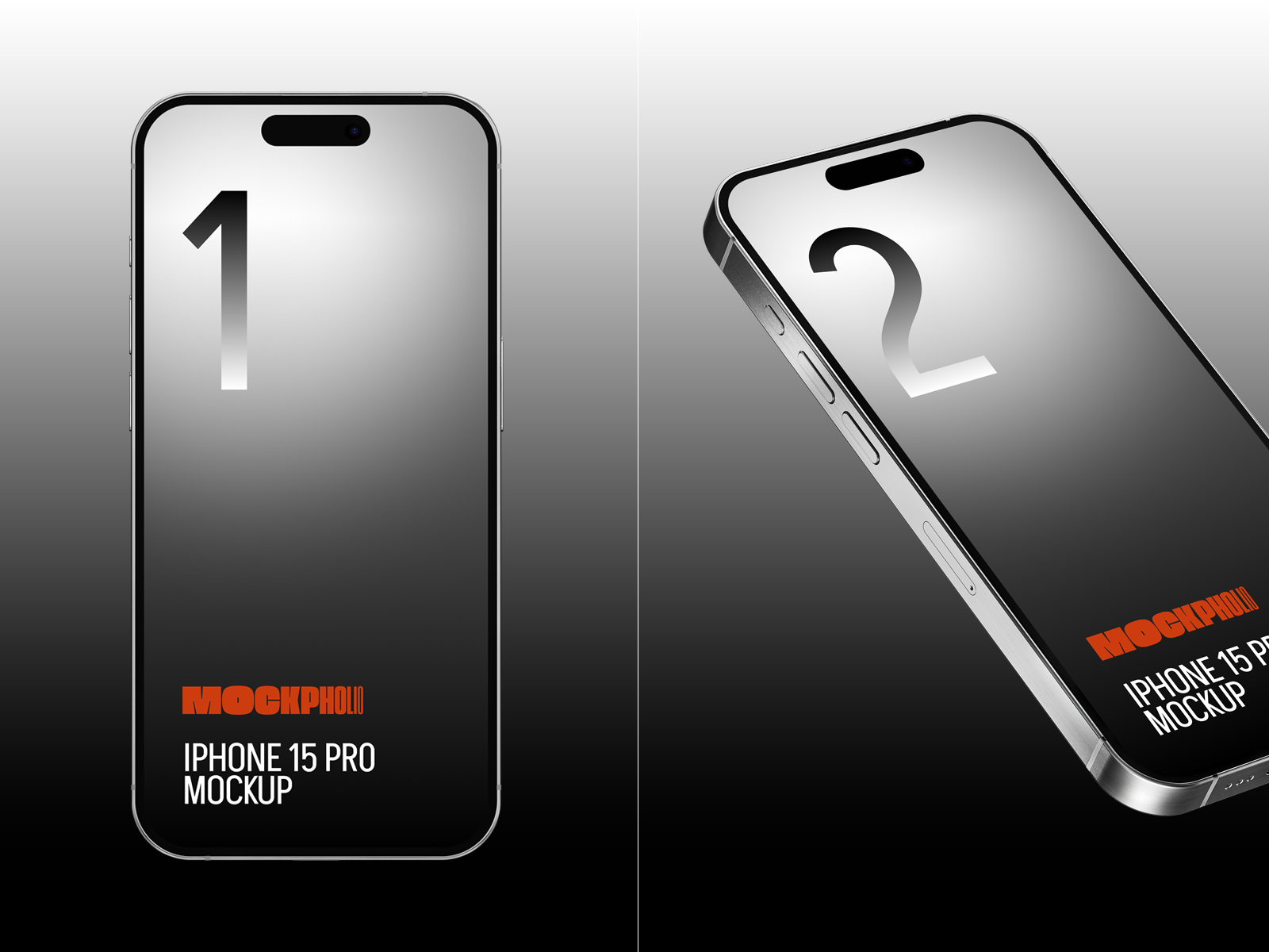 Free iPhone 15 Pro Mockup by Mockpholio What is included: 1 PSD scene (as seen on the cover slide images).One colour – Natural titanium.PSD has been set up to be easy to use. Simply paste your image and your are set!Customisable background. All assets are separated from the background.PSD resolution - 6400x3600 Get all mockups here